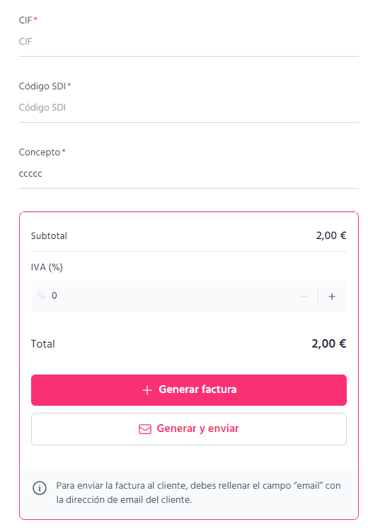 • Una vez completados los datos, puedes elegir entre dos opciones para generar la factura: