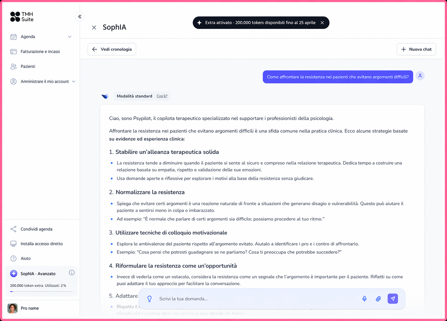 L'uso di SophIA viene misurato tramite token, che vengono consumati in ogni interazione in base al volume e alla complessità della consultazione.