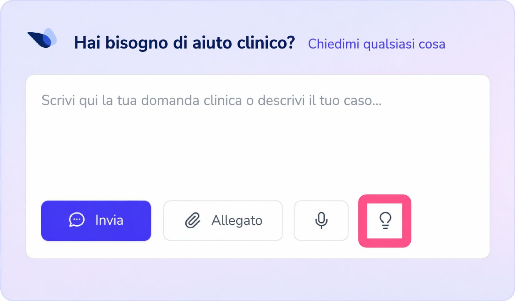 In fondo al pannello di conversazione, accanto allo spazio in cui normalmente inserisci la tua consultazione, si trova l'icona della lampadina.