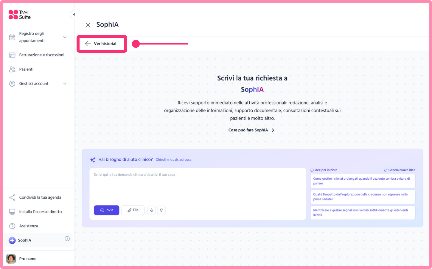 SophIA dispone di una cronologia che consente di rivedere facilmente tutte le consultazioni effettuate e di mantenere le informazioni organizzate.